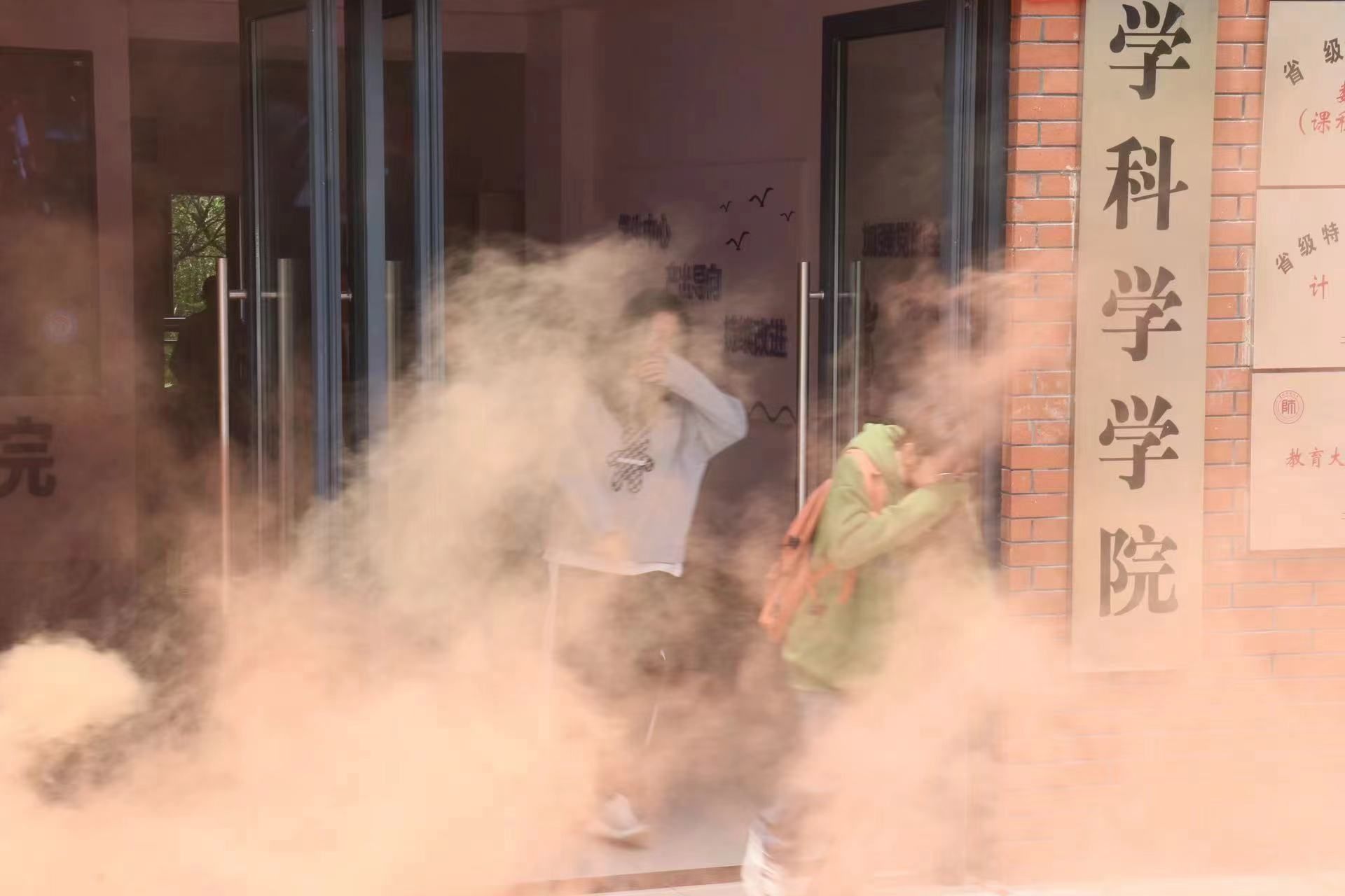 在应急疏散演练环节,辅导员首先对参加演练的员工进行了防灾减灾知识普及,交代了逃生路线和注意事项,并组织员工观看了防灾减灾宣传视频。演练开始时,beat365亚洲体育官方网站教学楼内烟雾四起,警笛骤响,同学们在辅导员和保卫处工作人员的引导下,按照既定路线和火场逃生的自救互救方法,迅速从模拟火场疏散到教学楼外空旷地带。