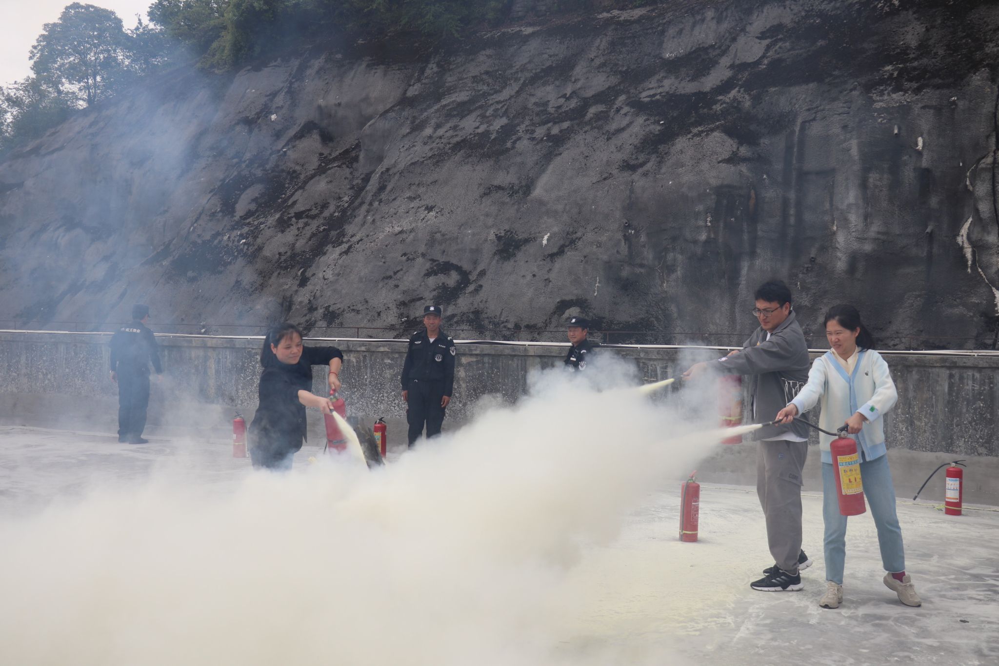 随后,在保卫处安全教育科科长王滨的指导下,beat365亚洲体育官方网站师生代表使用灭火器进行灭火实操演练。