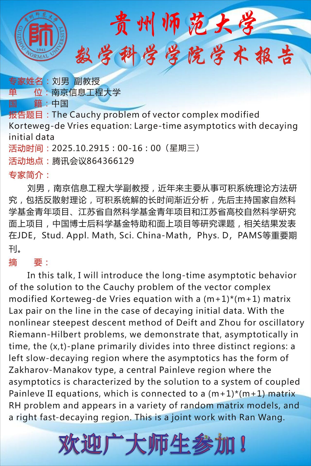 南京信息工程大学刘男副教授受邀为公司师生做学术报告