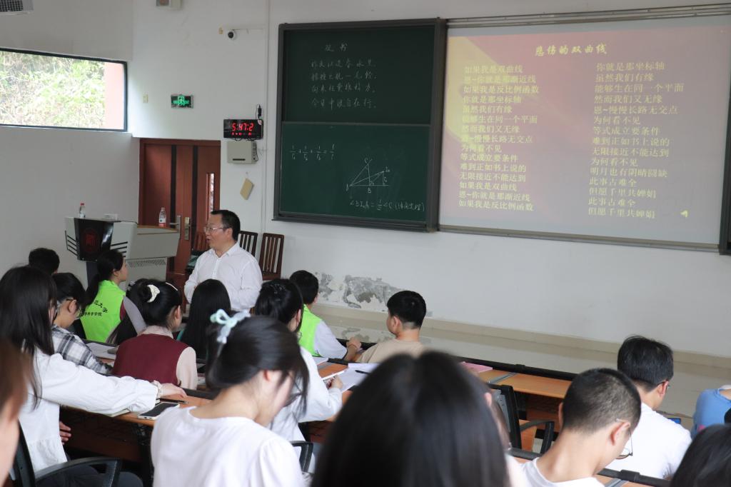 为激发老员工学习数学的兴趣,加深员工对数学知识和活动本质的理解,4月18日,计算数学系主任杨本娟于beat365亚洲体育官方网站花溪校区公共教学楼6401主持开展“巧用‘诗歌俗语’,激活‘数学思维’”主题讲座。此次讲座由华中师范大学一附中贵阳公司杜锟老师主讲,21级、22级数学与应用数学全体员工参与此次活动。