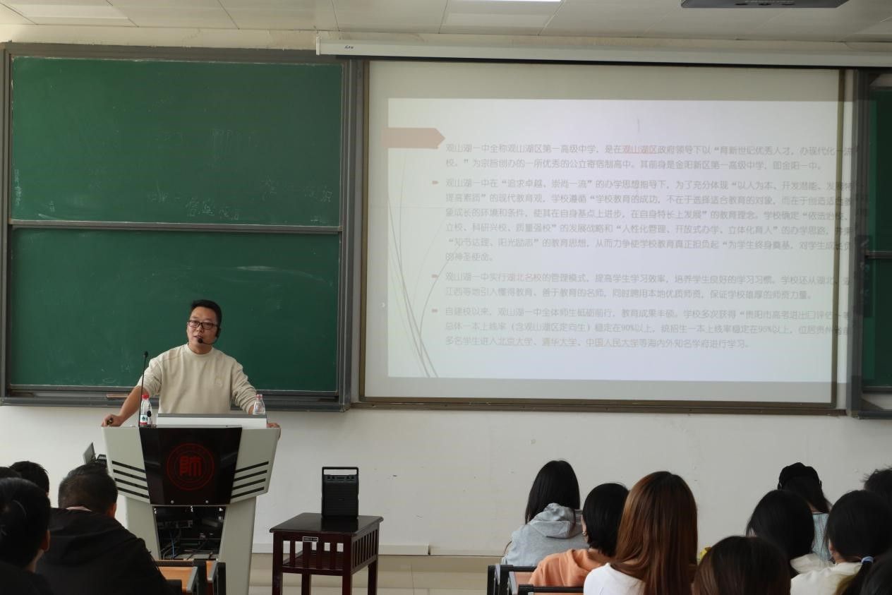 10月25日,观山湖第一高级中学轩海波老师于beat365亚洲体育官方网站花溪东校区GJ3401教室开展了“中学名师进课堂系列活动——教改形势下如何适应数学教师新角色”主题讲座,2023级数学与应用数学专业全体员工参加了此次活动。