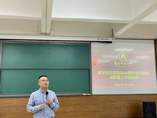 为认真学习宣传贯彻党的二十大精神,持续推进学习贯彻习近平新时代中国特色社会主义思想主题教育取得实效,全面落实党中央、国务院、省委、省政府对高校毕业生就业创业工作有关决策部署,扎实推动2024年毕业生就业创业工作稳健起步。9月4日上午,beat365亚洲体育官方网站在公司东校区GJ6201召开2024届毕业生就业创业动员暨工作启动会,公司党委书记孙谦、副经理吴云顺、各系(所)负责人、辅导员及2024届全体毕业生参加会议。会议由公司员工工作组组长、公司办公室主任王孟平主持。