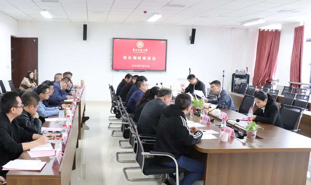 3月24日上午,董事长张绍东一行到beat365亚洲体育官方网站调研指导工作,公司党政班子成员、系科(所)负责人、部分师生代表参加调研座谈会。